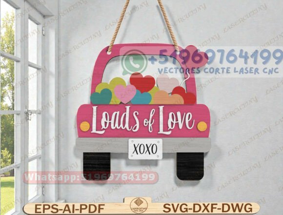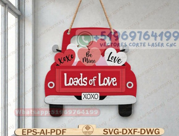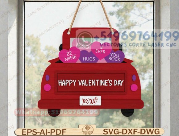 Este pack de letreros colgantes en forma de camión trasero es una propuesta decorativa original y altamente vendible, pensada para fechas románticas como San Valentín, aniversarios o regalos personalizados.
