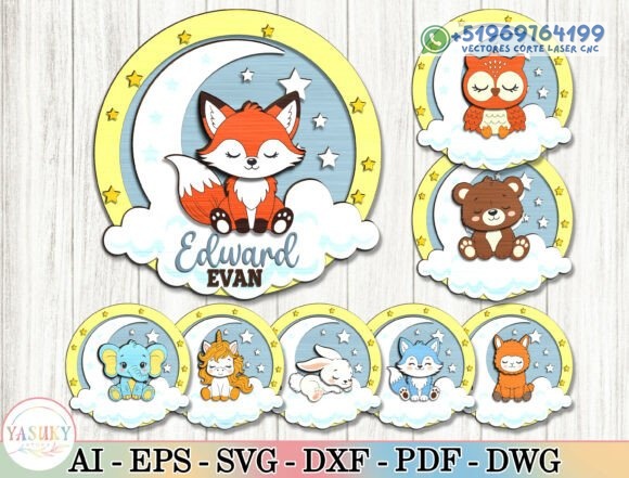 Este pack de letreros infantiles personalizados combina ternura, color y diseño en adorables personajes sobre nubes y lunas. Ideal para decorar habitaciones de bebé, puertas de dormitorio o espacios especiales llenos de magia y dulzura.