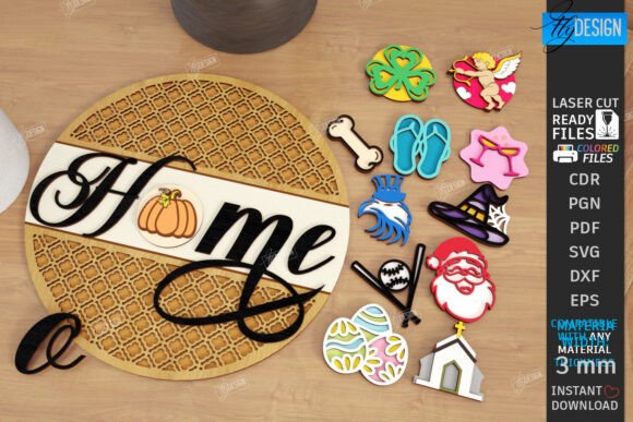 Este pack reúne 5 letreros decorativos intercambiables con decenas de piezas temáticas para personalizar tu hogar durante todo el año. Cada diseño está optimizado para corte láser en MDF de 3 mm, con líneas limpias, encastres precisos y detalles que lucen increíbles al pintar o dejar en madera natural.