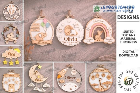 Este pack de letreros personalizados para bebé convierte los primeros datos de vida en una pieza decorativa única, donde cada nombre, fecha y detalle queda grabado como parte de una historia que recién comienza.