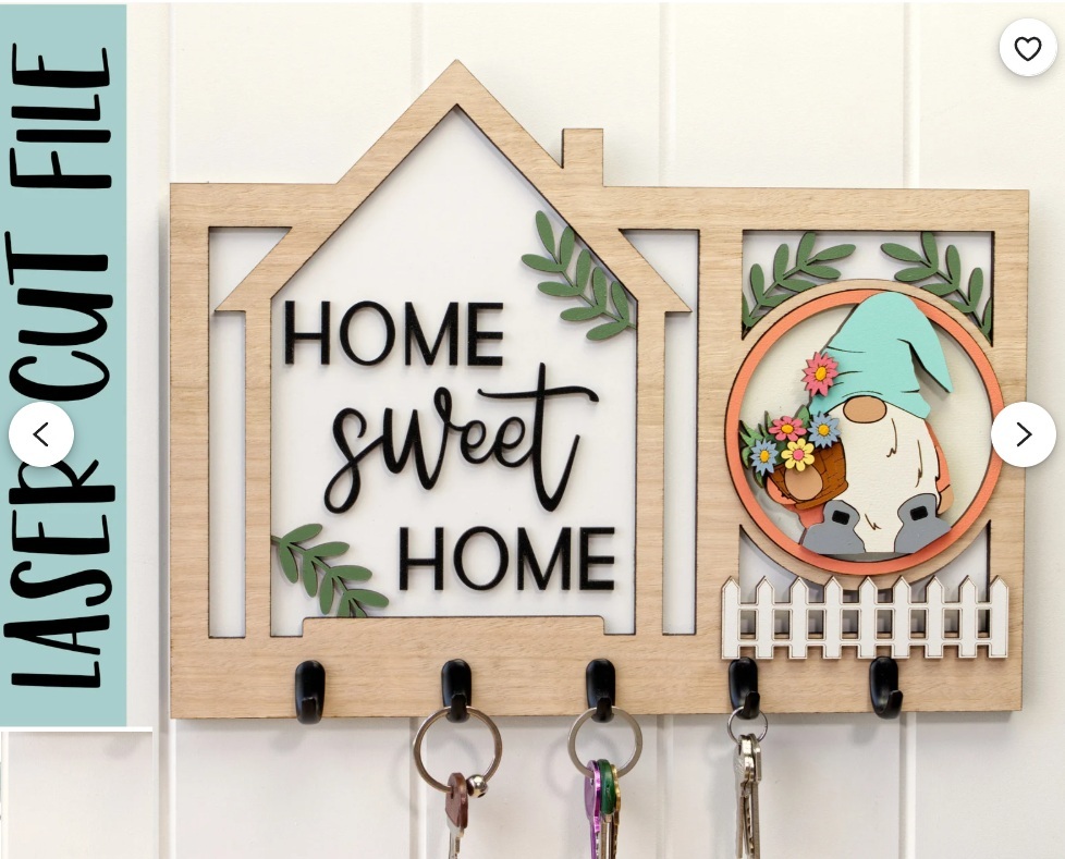 Este hermoso diseño combina funcionalidad y estilo en una sola pieza: un llavero mural con la frase «Home Sweet Home» y un encantador gnomo decorativo. Ideal para colocar en la entrada del hogar, este proyecto en capas está optimizado para corte láser y ofrece un resultado profesional tanto para uso personal como para venta.