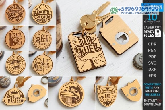 Llaveros Abrebotellas en Madera para Papá – Pack Creativo para Corte Láser