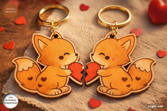 Cada diseño muestra dos personajes enfrentados, sosteniendo o compartiendo un corazón central. Al separarse, cada persona conserva su mitad, convirtiendo el llavero en un símbolo de vínculo, amistad o amor. Las líneas suaves y proporciones redondeadas hacen que el corte sea limpio y el resultado final visualmente encantador.