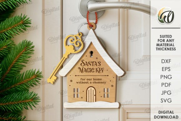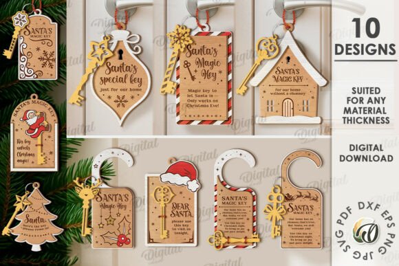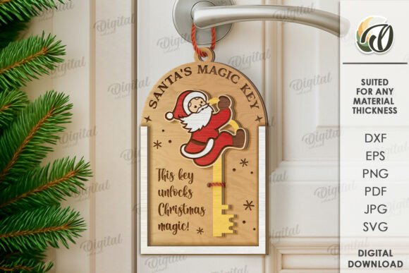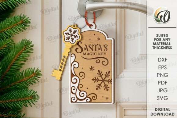 Este pack de colgadores navideños con la Llave Mágica de Santa es perfecto para añadir un toque encantador y festivo a cualquier hogar. Diseñados especialmente para corte láser, incluyen frases dulces, llaves decorativas, casitas, etiquetas y ganchos listos para personalizar.