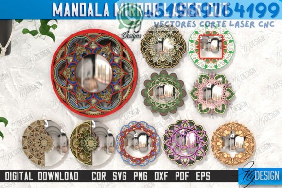 Dale vida y elegancia a tus espacios con este paquete de marcos mandala para espejos, ideales para decoración mural en madera o acrílico. Cada diseño combina arte geométrico y estilo moderno, perfectos para proyectos artesanales o productos personalizados.