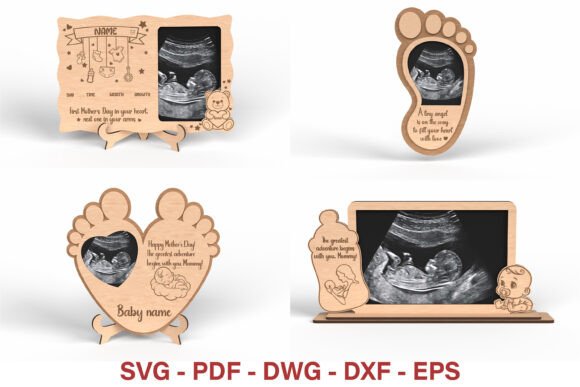 Fáciles de cortar y ensamblar, con espacio perfecto para colocar la foto de la ecografía.