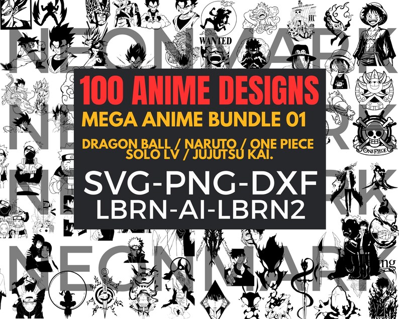 100 diseños anime listos para corte y grabado