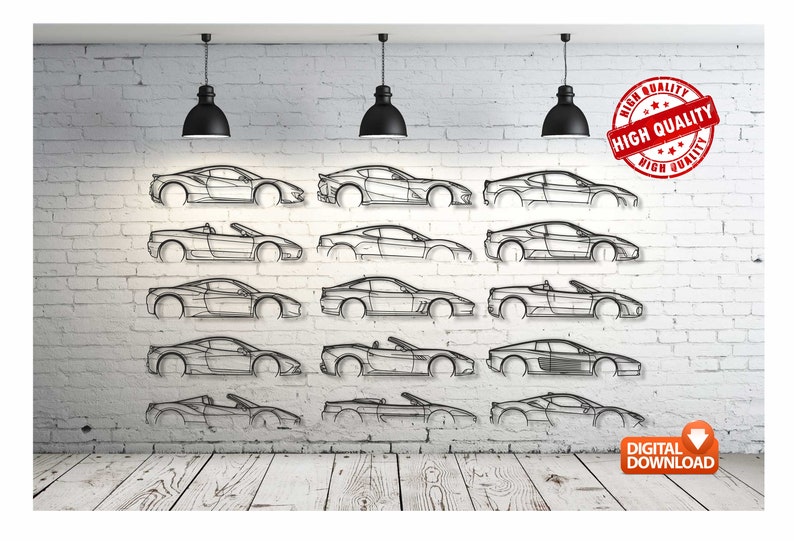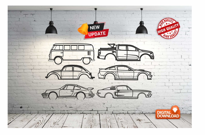Más de 150 diseños de autos, cuidadosamente vectorizados, con líneas limpias y proporciones reales, ideales para trabajos profesionales en madera, MDF, acrílico o metal.