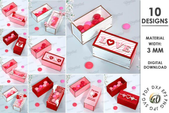 Este pack reúne 10 mini cajas temáticas de San Valentín, perfectas para dulces, pequeños regalos y detalles personalizados. Cada diseño está optimizado para corte láser en MDF de 3 mm, con acabados limpios, ensambles precisos y motivos románticos que conectan al instante con la temporada.