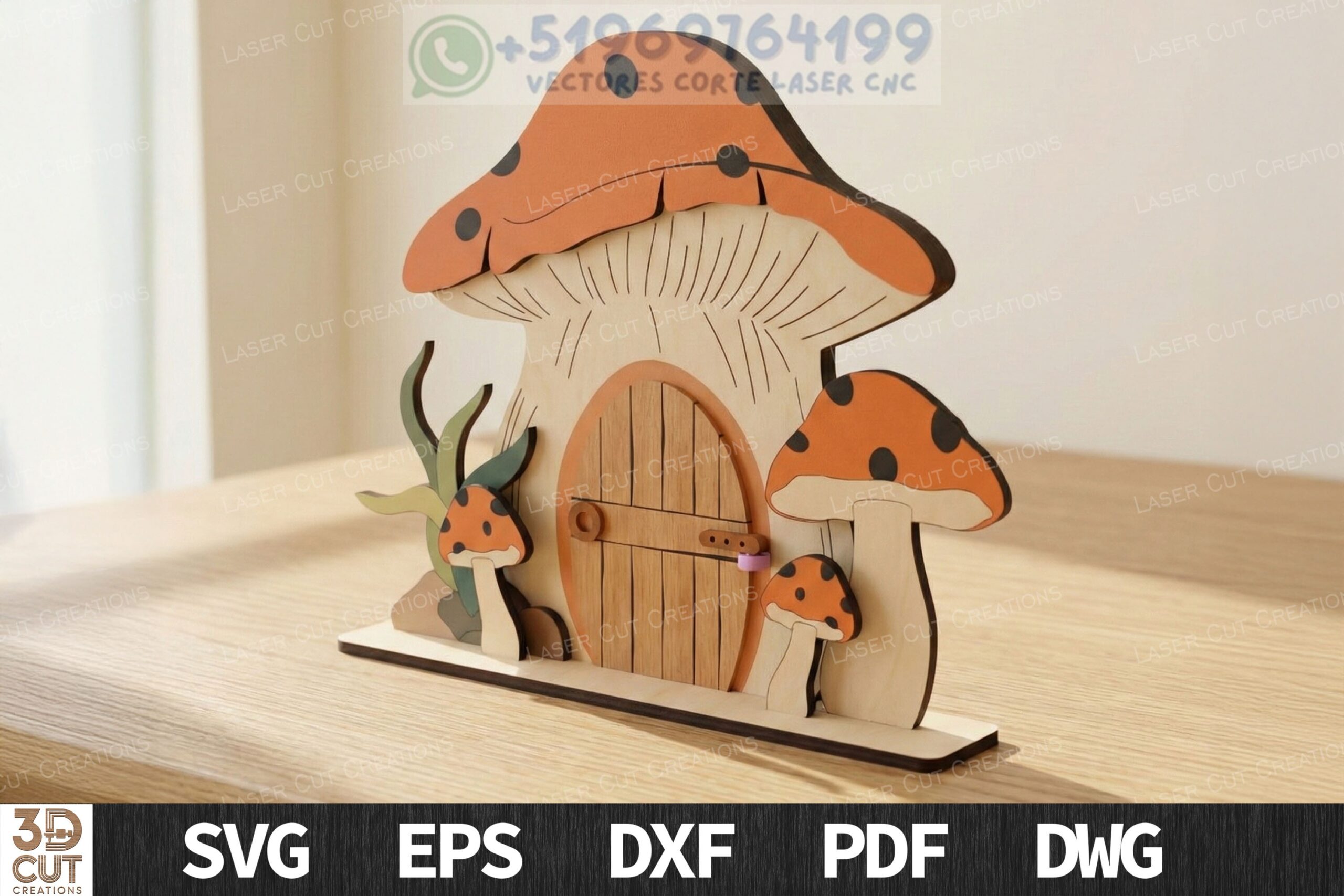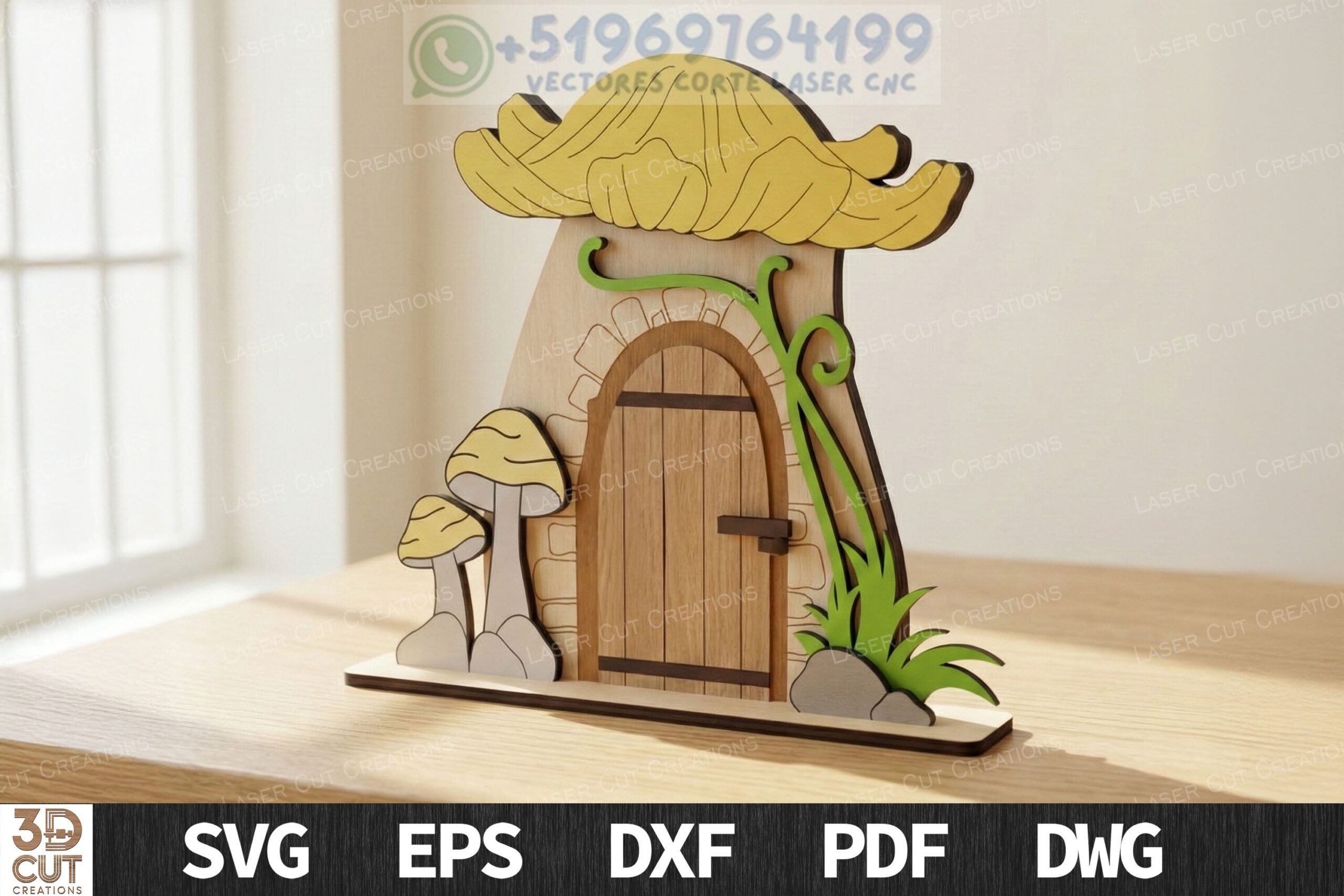 puerta de hada MDF láser, casa de hadas SVG, diseño 3D corte láser infantil, archivo DXF casita mágica, modelo CNC decoración bosque, puerta mágica madera para niños.
