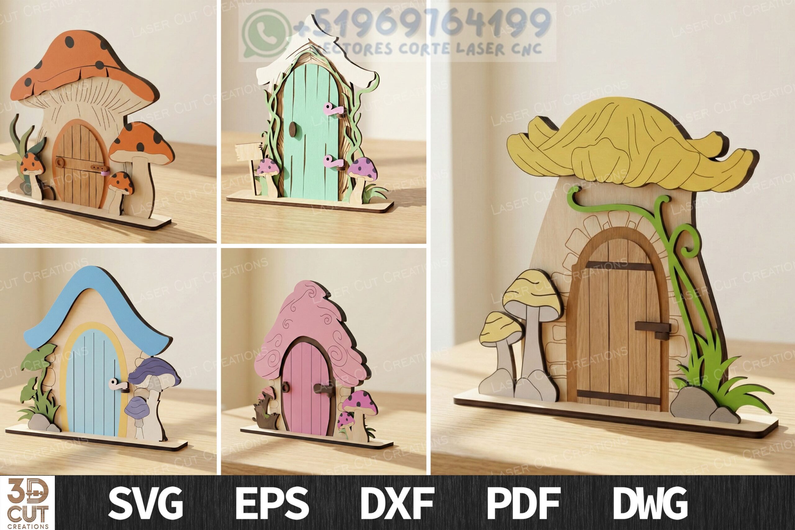 Mini Casas Encantadas 3D en MDF – Pack de Puertas de Hadas para Corte Láser