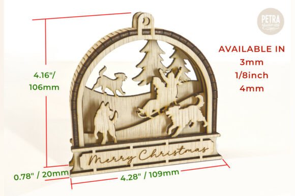 Los archivos están listos para cortar en materiales de 3 mm o 4 mm (1/8 in) y vienen en formatos universales: SVG, PDF, DXF, EPS y PNG, compatibles con los programas y máquinas de corte láser más utilizados.