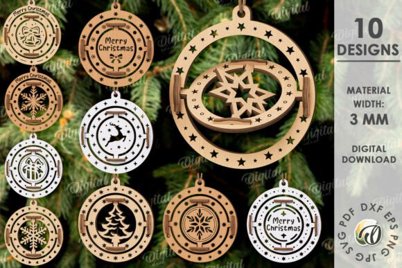 Pack de Adornos Giratorios 3D de Navidad – Archivos Digitales para Corte Láser