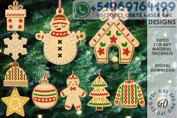 Agrega calidez y detalle a tu decoración navideña con este encantador pack de adornos estilo punto cocido para corte láser, ideal para colgar en el árbol, decorar regalos o crear recuerdos personalizados. Este set incluye diseños multilayer listos para pintar, compatibles con cualquier grosor de material.