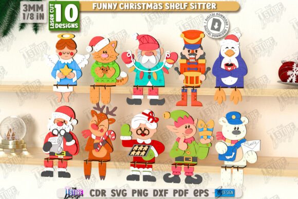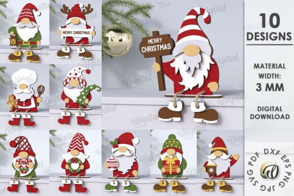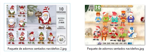 Haz que tu decoración sea única con este paquete exclusivo de adornos navideños sentados, diseñados para corte láser. Incluye divertidos personajes como Santa Claus, renos, gnomos, osos, pingüinos y más, perfectos para colocar en repisas, mesas o como parte de tu decoración navideña personalizada.