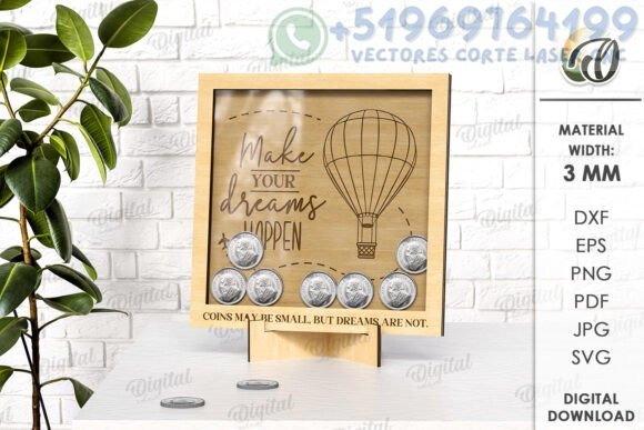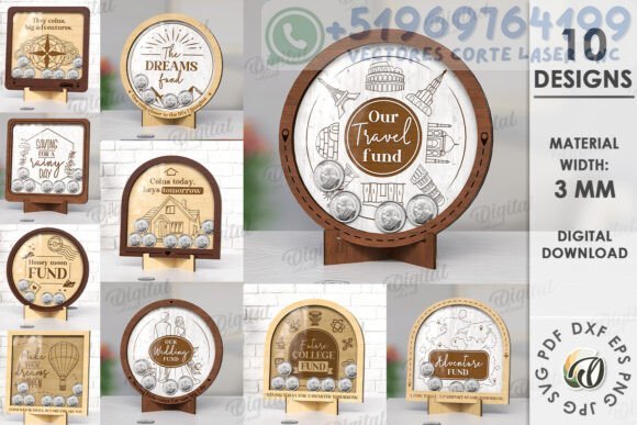 Convierte el ahorro en una experiencia creativa y decorativa con este paquete de alcancías digitales para corte láser. Diseñadas especialmente para fondos de viaje, sueños, estudios o aventuras, estas huchas originales le dan un toque elegante a cualquier espacio.