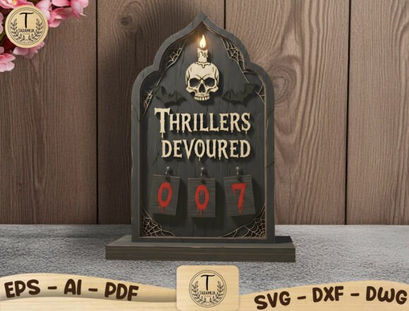 Archivos en SVG, DXF, DWG, AI, EPS y PDF, compatibles con LightBurn, CorelDRAW, Illustrator y máquinas CNC de corte láser. Diseños perfectos para crear decoración para amantes de la lectura, contadores de libros, decoración gótica para biblioteca y regalos para lectores o book lovers.
