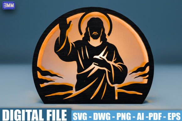 Archivos en SVG, DWG, AI, PNG, PDF y EPS, compatibles con LightBurn, CorelDRAW, Illustrator y máquinas CNC de corte láser. Diseños perfectos para fabricar cuadros religiosos iluminados, decoración espiritual para el hogar, arte cristiano en madera y regalos religiosos personalizados.