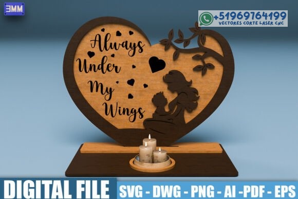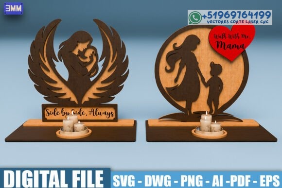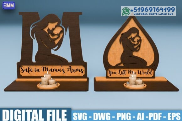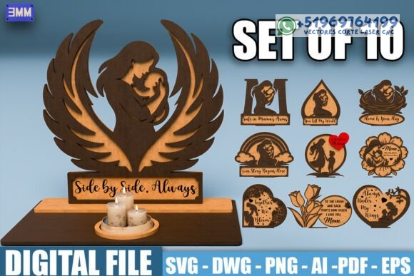 Pack de Diseños Madre e Hijo en Madera para Corte Láser – Colección Decorativa con Siluetas y Frases