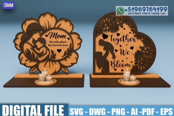 🌸 Soportes Personalizados para el Día de la Madre – Pack de 4 Diseños Láser