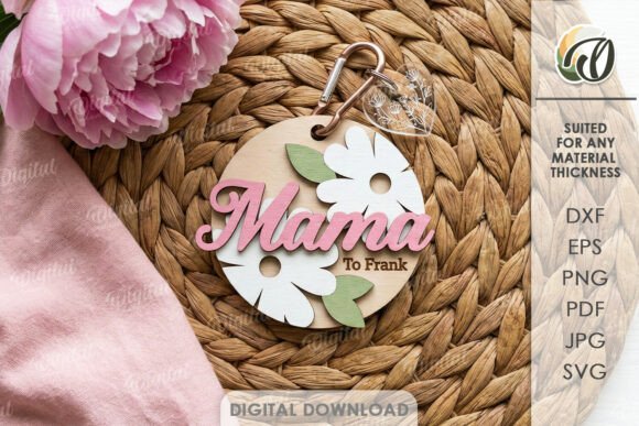 Archivos en SVG, DXF, EPS, PNG y PDF, compatibles con LightBurn, CorelDRAW, Illustrator y máquinas CNC de corte láser. Diseños perfectos para crear regalos personalizados para mamá, llaveros artesanales, detalles para el Día de la Madre y productos pequeños para venta en MDF o acrílico.