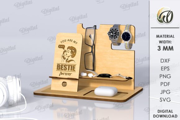 Mantén todo en orden con este exclusivo Pack de Organizadores de Escritorio en formato SVG, diseñado especialmente para corte láser. Incluye 10 modelos diferentes de soportes prácticos para audífonos, celulares, relojes, llaves y otros accesorios, perfectos para crear piezas funcionales y elegantes.