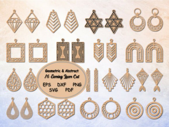 Descubre este exclusivo pack de 16 diseños de pendientes geométricos y abstractos en SVG para corte láser, ideales para crear accesorios modernos y únicos que combinan arte y estilo. Perfectos para emprendimientos de joyería artesanal o como un detalle creativo hecho a mano.