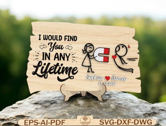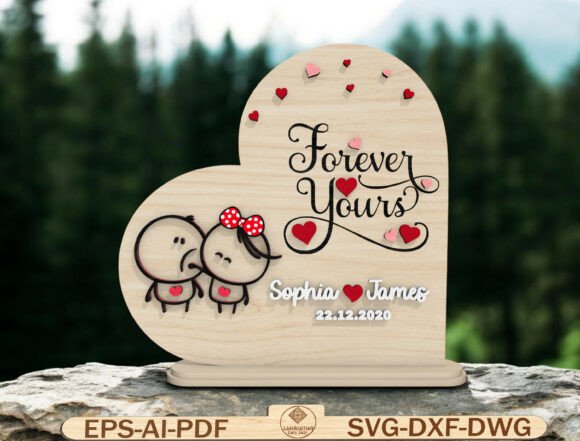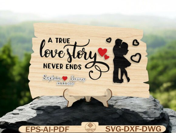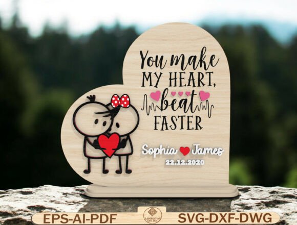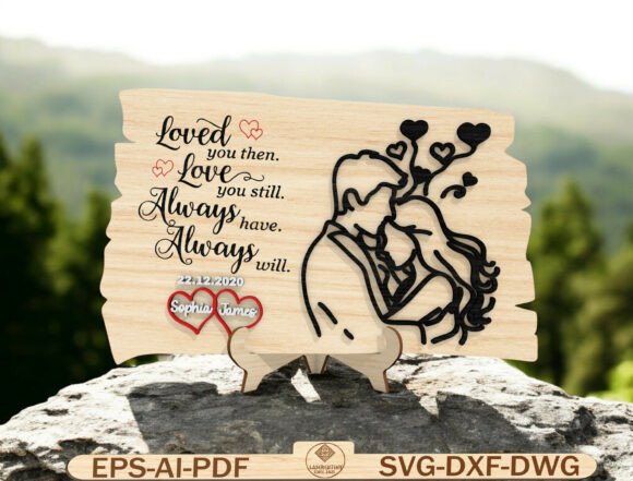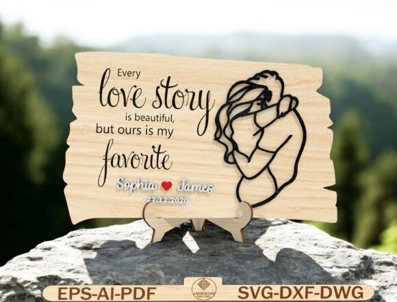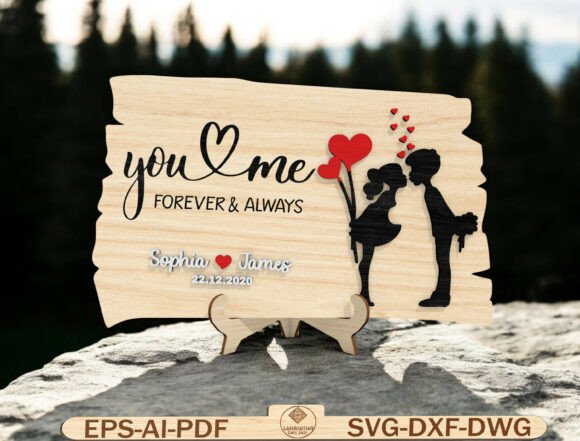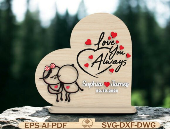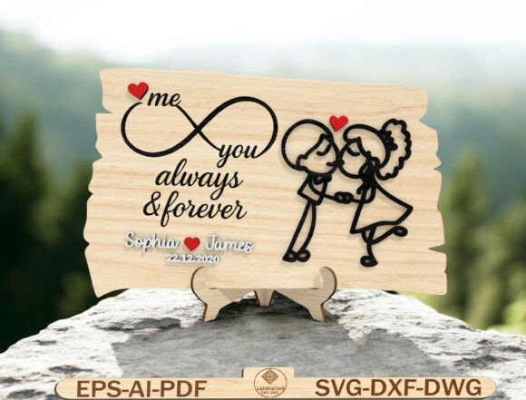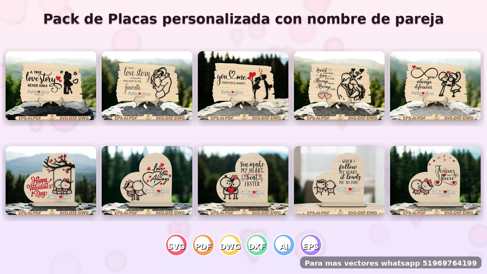 Cada modelo combina formas orgánicas (corazones, siluetas de pareja, placas irregulares y redondas) con ilustraciones delicadas y tipografías románticas, pensadas para grabado limpio y lectura clara. Son piezas ideales para regalos personalizados, decoración de interiores o ventas por fechas clave como San Valentín, aniversarios y bodas.