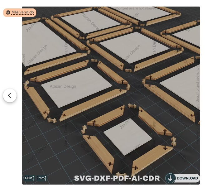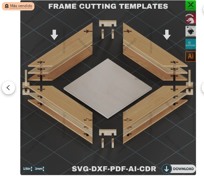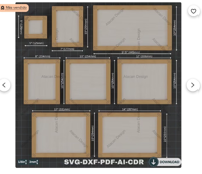 Crea exhibiciones profesionales y personalizadas con este pack de plantillas de marcos para corte láser, ideal para presentar fotos, obras de arte, papercut, sublimaciones o cuadros decorativos. Cada diseño viene con sistema de ensamblaje sin tornillos y está disponible en 8 tamaños diferentes, perfectos para cualquier proyecto.