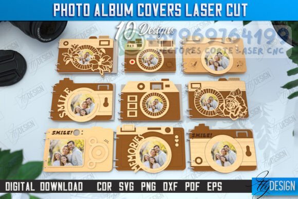 Pack de Portadas para Álbum de Fotos – 10 Diseños de Cámaras para Corte Láser