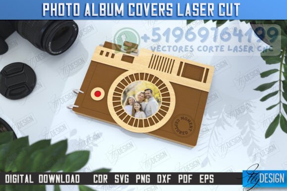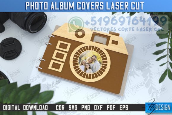 Convierte tus recuerdos en obras de arte con este pack de portadas de álbumes fotográficos con forma de cámaras vintage y modernas. Diseñadas para corte láser, estas cubiertas personalizadas son ideales para regalar, vender o archivar momentos especiales con estilo.