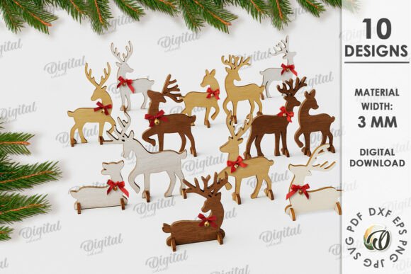 • 10 diseños diferentes de renos con detalles navideños.