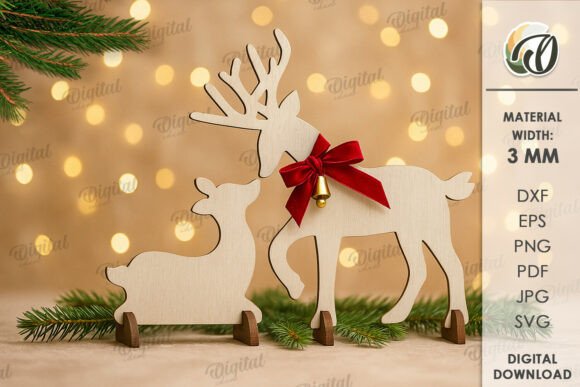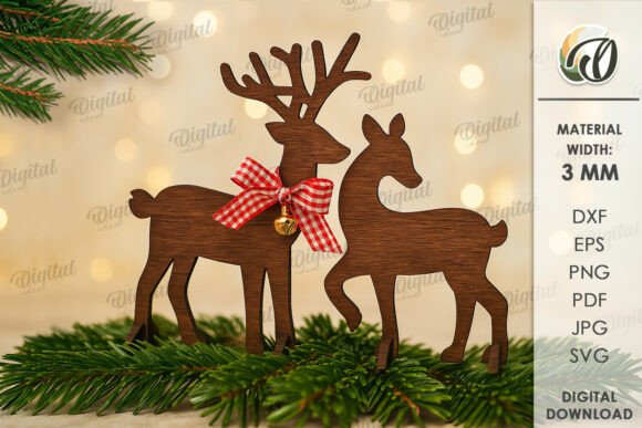Crea una escena navideña llena de encanto con este Pack de Renos Navideños, perfecto para tus proyectos de corte láser y decoraciones de temporada.