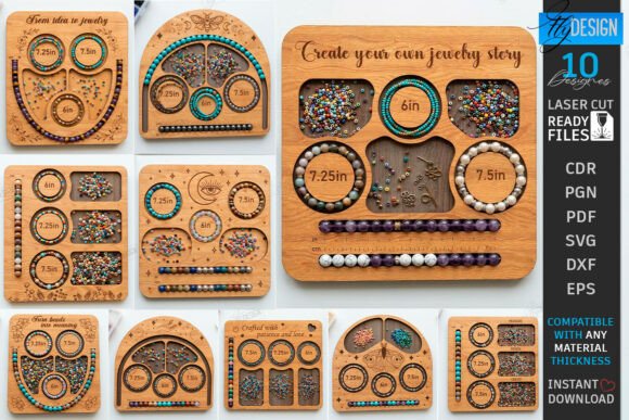 Pack de Tableros Organizadores para Pulseras en Madera – 10 Diseños Profesionales para Corte Láser