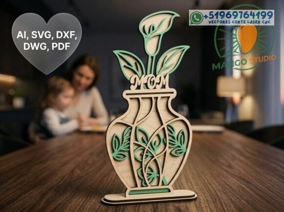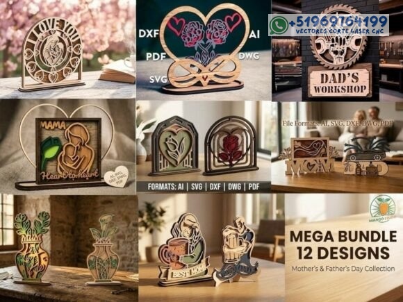 Pack Decorativo Día de la Madre y del Padre en Madera – 12 Diseños en Capas para Corte Láser