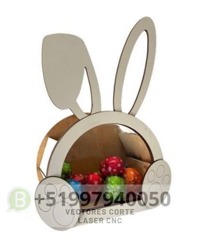 Pack Pascua Conejos para corte láser en MDF. Diseños de cestas y cajas de Pascua en formato CDR y DXF ideales para dulces, huevos y regalos personalizados.