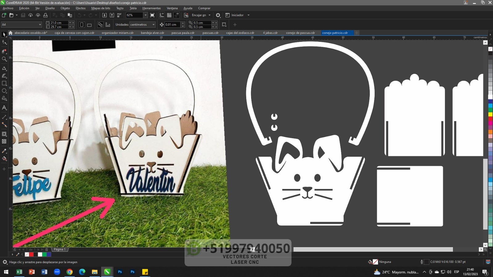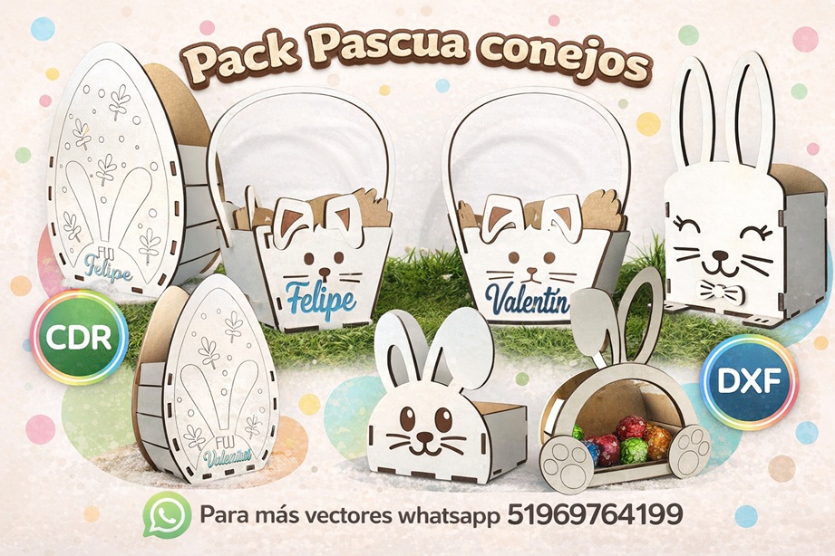 La Pascua es una de esas fechas donde los detalles pequeños generan grandes sonrisas. Este Pack Pascua Conejos para corte láser reúne una colección de diseños temáticos pensados para fabricar cestas, cajas y contenedores decorativos con forma de conejo y huevo, perfectos para colocar dulces, chocolates o huevos de Pascua.