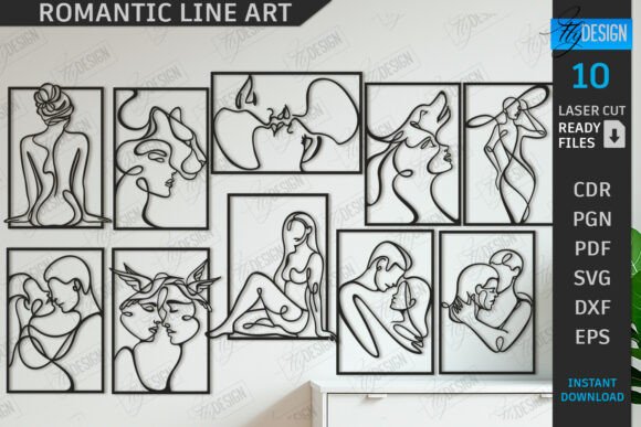 Transforma tus espacios con este paquete de arte lineal romántico, un conjunto de 10 diseños minimalistas y elegantes listos para corte láser. Perfectos para cuadros decorativos modernos, murales, proyectos de interiorismo y regalos personalizados.