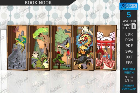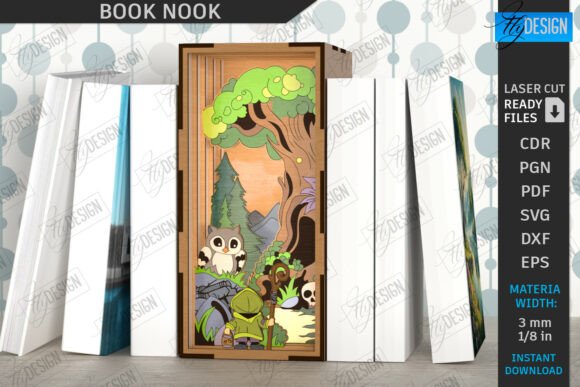 Transforma tu biblioteca en un mundo mágico con este paquete de Book Nook para corte láser, diseñado para darle vida y personalidad a tus estanterías. Cada diseño incluye detalles únicos que convierten cualquier rincón de libros en una obra de arte tridimensional.