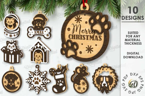 Sorprende esta Navidad con este paquete exclusivo de adornos colgantes para mascotas. Diseños adorables y llenos de espíritu festivo, ideales para dueños de perros y gatos que desean personalizar su árbol de Navidad o realizar proyectos creativos con corte láser o plotter de corte.