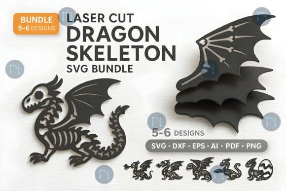 Paquete de Esqueletos de Dragón – Archivos SVG para Corte Láser