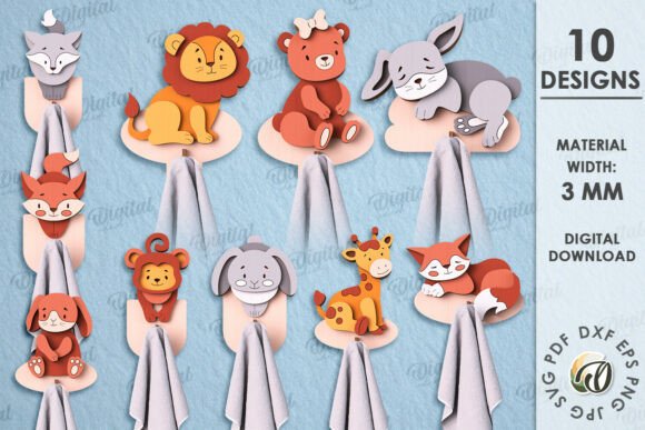 Decora tus espacios con ternura y practicidad gracias a este paquete de ganchos para toallas con animales, diseñados especialmente para corte láser. Ideales para habitaciones infantiles, baños, cocinas o incluso como regalos personalizados que combinan utilidad y estilo.