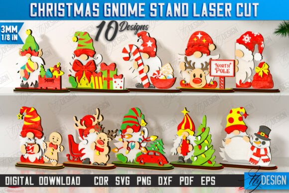 10 diseños exclusivos de gnomos navideños listos para cortar y armar.