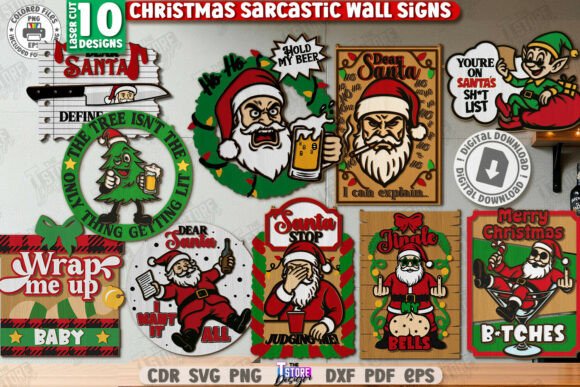 Sorprende con un estilo diferente y lleno de humor con este paquete de letreros navideños sarcásticos, el complemento perfecto para una Navidad divertida y original.