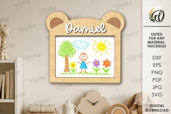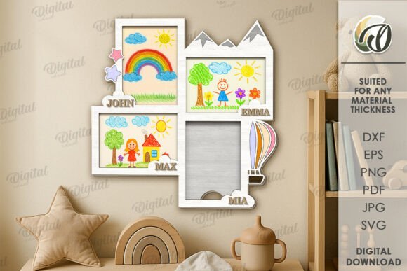 Conserva y exhibe los dibujos de los más pequeños de una manera especial con este paquete de marcos de dibujo para niños. Diseñado para máquinas de corte láser, este set ofrece una forma creativa y encantadora de guardar sus primeras obras de arte.