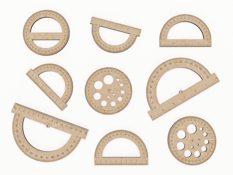 Más de 50 diseños de reglas, escuadras y transportadores.