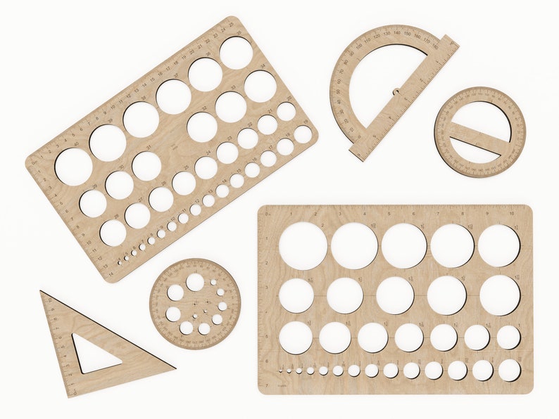Potencia tus proyectos con este paquete de más de 50 reglas y escuadras en formato digital, diseñado para corte láser en diferentes materiales. Incluye reglas métricas e imperiales, ideales para estudiantes, arquitectos, diseñadores y creadores que buscan precisión y un acabado profesional.
