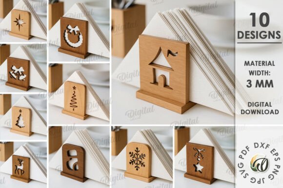 Haz que tu mesa luzca única y memorable con estos servilleteros navideños para corte láser, un detalle que marcará la diferencia en tus celebraciones.