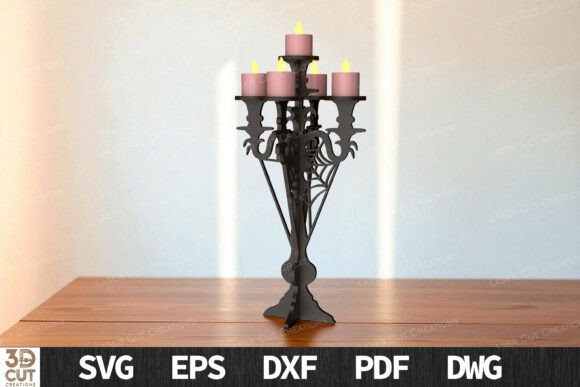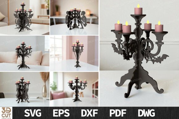 Diseños de candelabros estilo Halloween con detalles góticos y oscuros.
