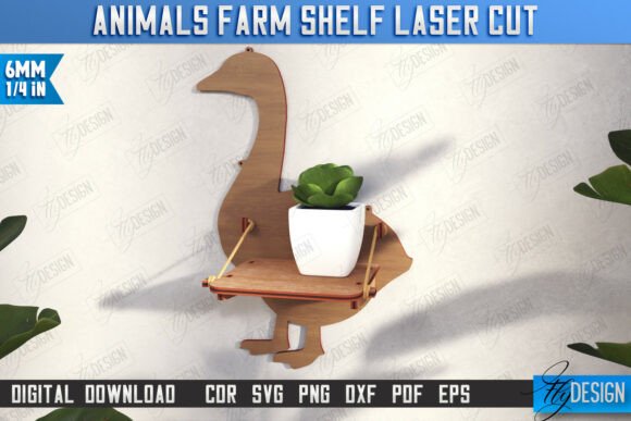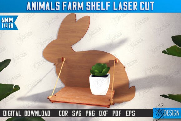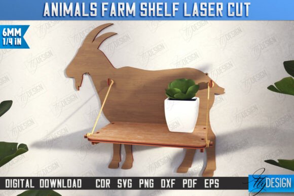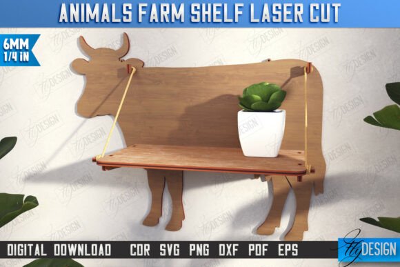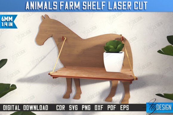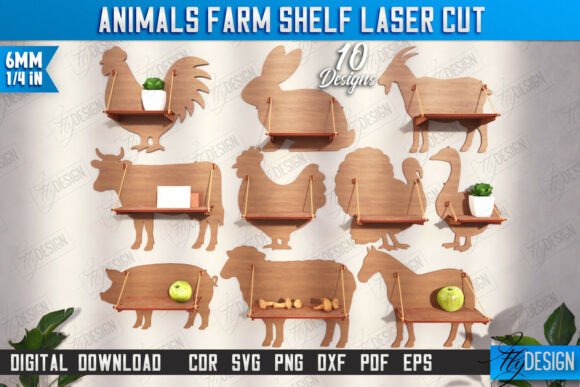 Decora tu hogar o taller con un estilo único gracias a este paquete de estantes con forma de animales de granja para corte láser. Incluye 10 diseños funcionales y decorativos, ideales para organizar pequeños objetos y dar un toque rústico y original a cualquier espacio.